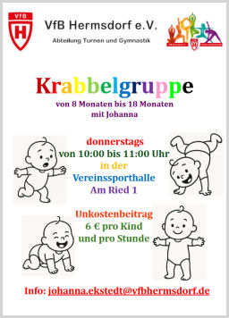Bei uns können die Kleinen mitmachen, sobald sie laufen können. Die Konzeption dieses Angebots geht davon aus, dass die Eltern oder auch Großeltern auch wirklich mitmachen, d.h. sich gemeinsam mit ihren Kindern bewegen und die Übungsleiterinnen bei der Durchführung unterstützen.